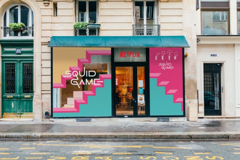 프랑스 파리 ‘오징어 게임’ 체험 팝업스토어ㅣ출처=넷플릭스 프랑스 트위터 10월 12일 프랑스 파리 알렉산드리아 12번지, 전날부터 내린 폭우로 인해 수많은 인파가 밤을 새웠다. 넷플릭스 프랑스가 이틀 동안 준비한 오징어 게임 팝업스토어에 입장하는 팬이었다. 수백 m의 긴 줄은 이틀째 이어졌고 끼어들려는 사람들과 몸싸움을 벌였고 경찰이 출동했다. 체험관에는 돼지저금통, 유리구슬 같은 소품이 준비됐고 관람객들은 달고나와 낙인을 받았다. 1분 30초 동안 달고나 게임에 성공하면 넷플릭스 1개월 이용권을 선물했다. 빈손으로 나온 몇몇 사람들은 아쉬운 마음으로 도로에서 딱지를 들이대는 영상을 올렸다.