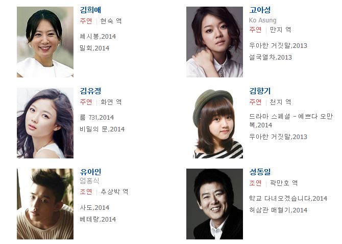 우아한 거짓말 (2014) 장르: 드라마 감독: 이한 출연진: 김희애, 고아성, 김유정, 김향기 상영시간: 117분 개봉일시: 2014년 3월 13일 평점: 8월 23일/8월 41 시청등급: 12세 관람가 관객수: 161만명