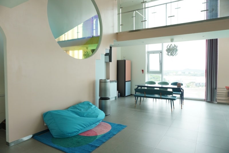 영흥도의 플루빌라 세븐 브라셀은 7개의 방이 있으며, 각 방마다 특색이 다른 것이 특징입니다.그래서 어떤 방을 고르는 재미가 있더라고요.한국의 아름다움이 담긴 라온과 영화 속에 들어온 듯한 새로운 경험을 할 수 있는 시네마의 하늘과 바다를 다채롭게 바라볼 수 있는 파노라마까지 모든 방이 매력적이어서 고르기 어려울 정도였습니다.그 중 제가 선택한 방은 넓은 수영장과 푸른 하늘을 가득 채운 따뜻함을 느낄 수 있는 시엘로입니다.
