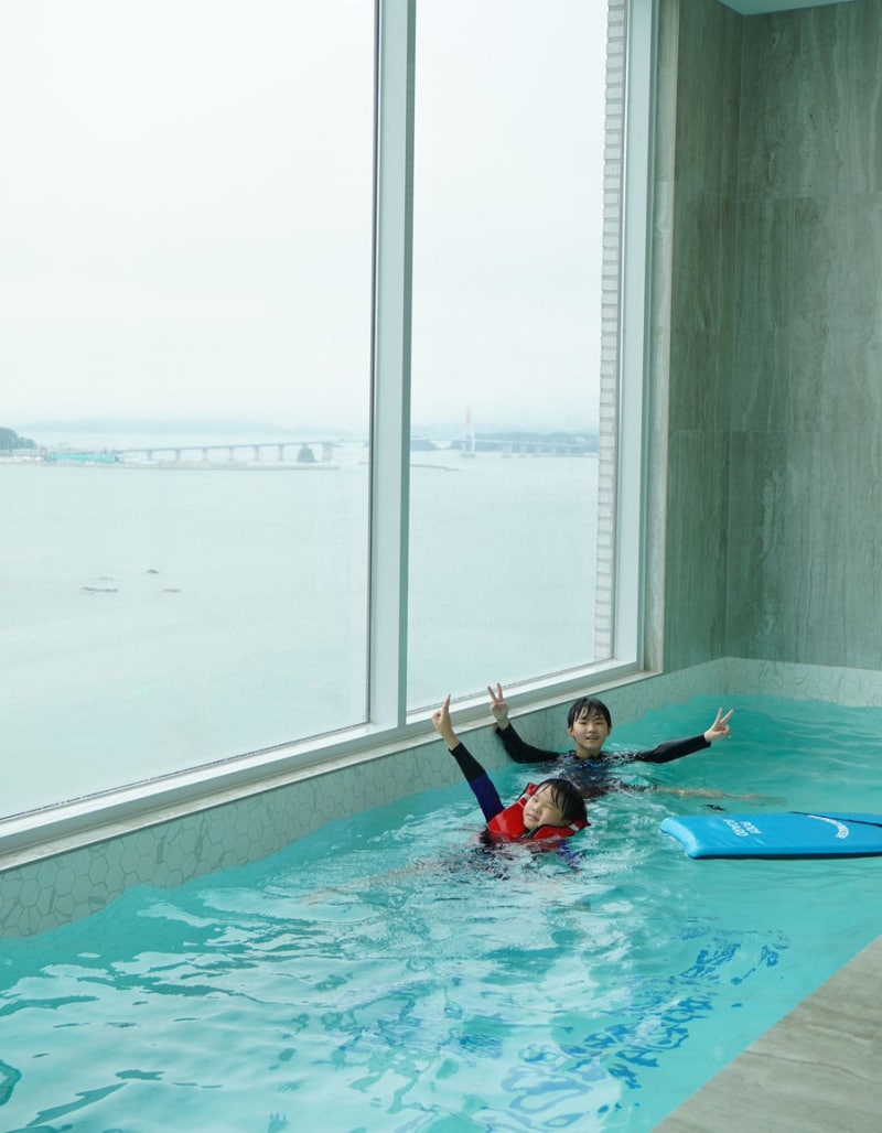 수영하면서 볼 수 있는 전망도 너무 좋았어요. 제가 풀빌라를 많이 가봤는데 여기 전망이 제일 좋았던 것 같아요. 넓은 바다를 보면서 실내에서 편하게 수영할 수 있었습니다. 사진 찍어도 너무 잘 나왔어요. 인생사진을 찍고 싶으신 분들께도 추천드리는 영훈도 풀빌라입니다.