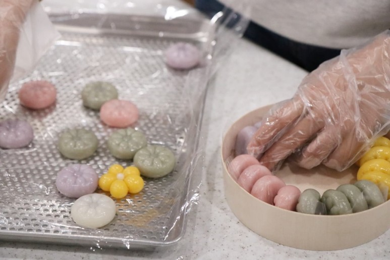 이번에 만든 송편 색깔은 파스텔톤으로 예쁘게 만들어 주셨어요~