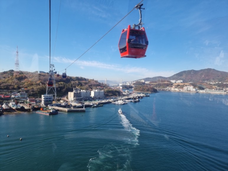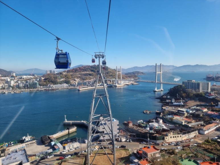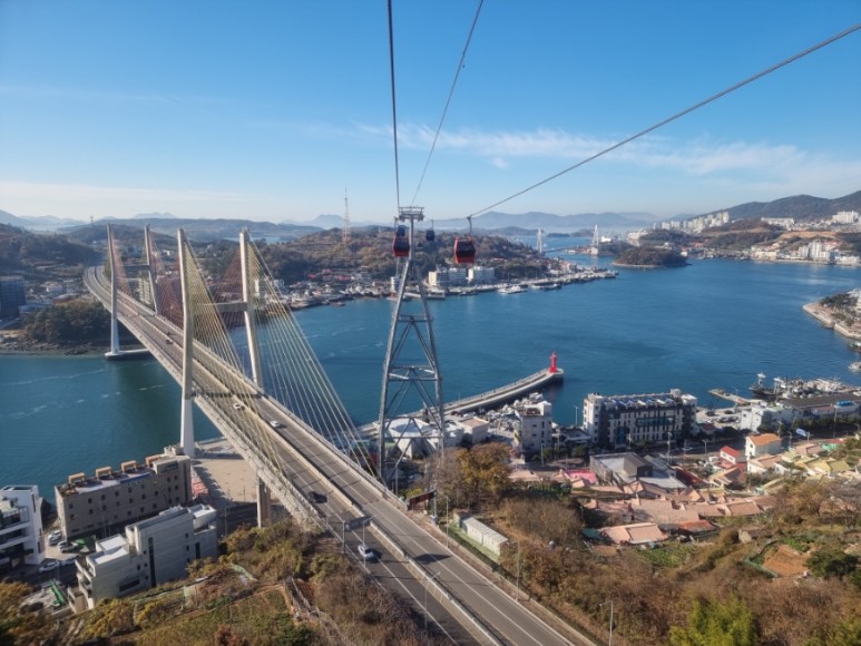여수 연안해상 위로 케이블카가 지나갑니다.