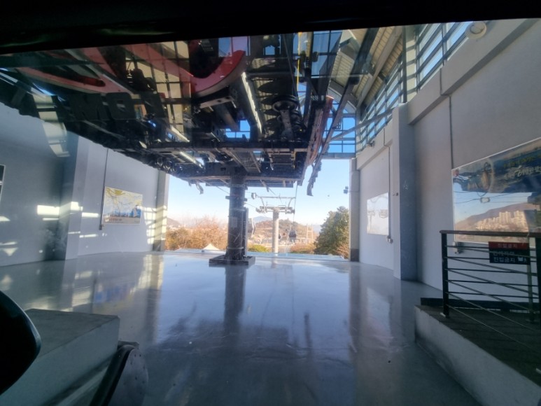 사람은 별로 없지만 케이블카는 계속 들어와요.