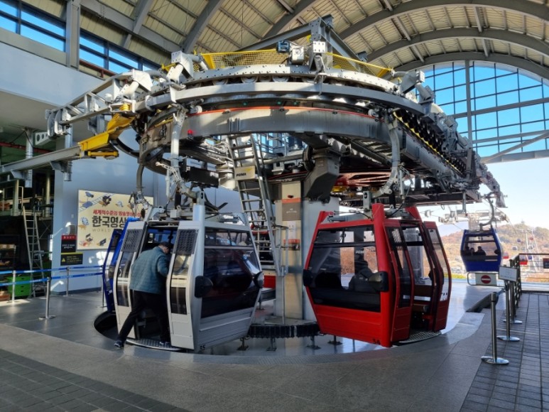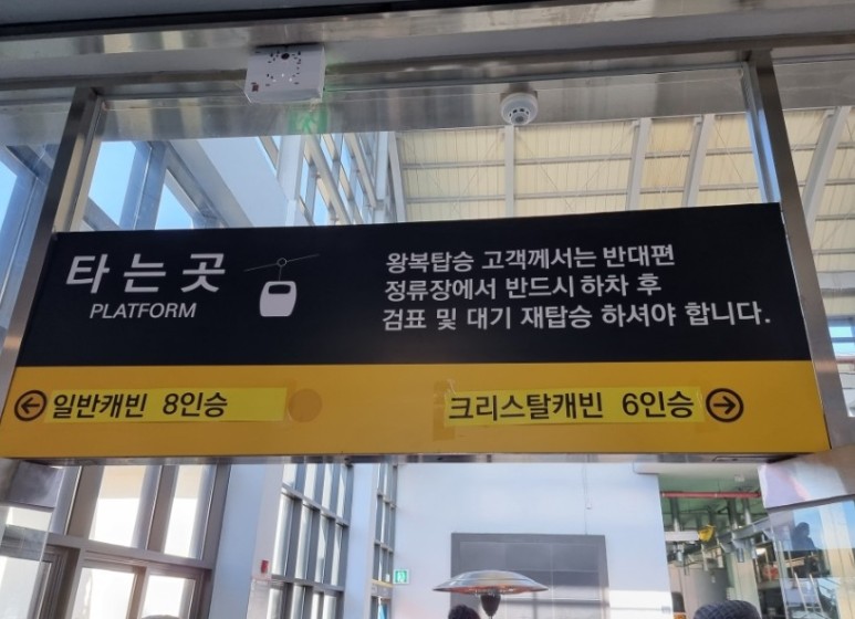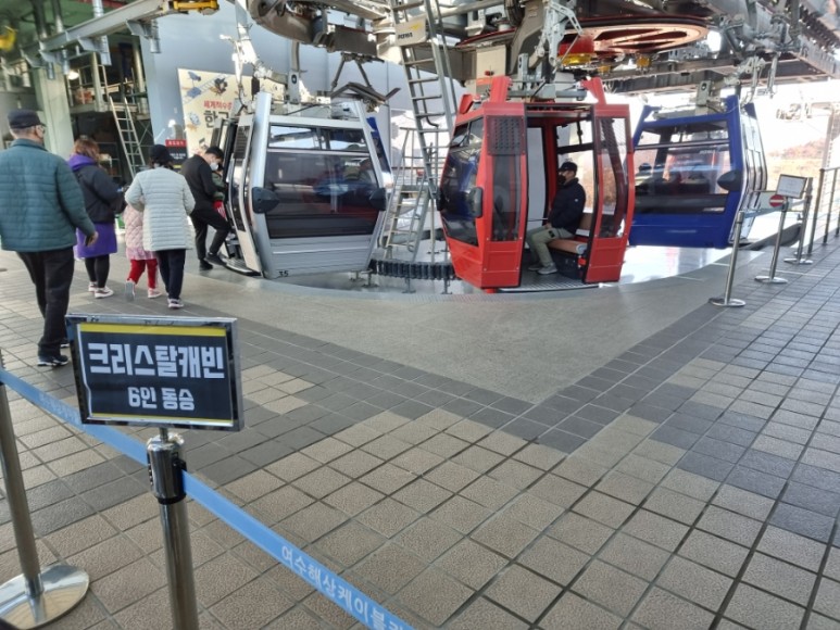 여기 승강장에서 8인승 일반 캐빈과 6인승 크리스털 캐빈이 들어가는 곳으로 나뉩니다.저는 더 높고 바닥이 보이는 크리스탈에서~