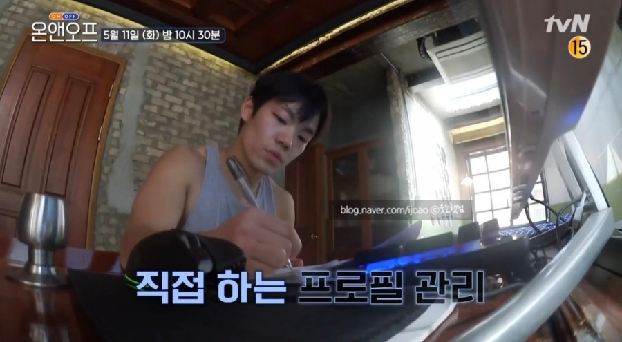 눈을 뜨자마자 자신의 프로필과 스케줄을 정리하기 시작한다.