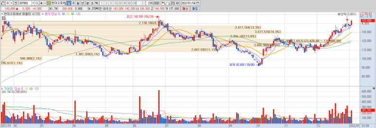 국산화에 성공하여 관련주로 시장에 부상하였습니다.현대오토에버 (307950)