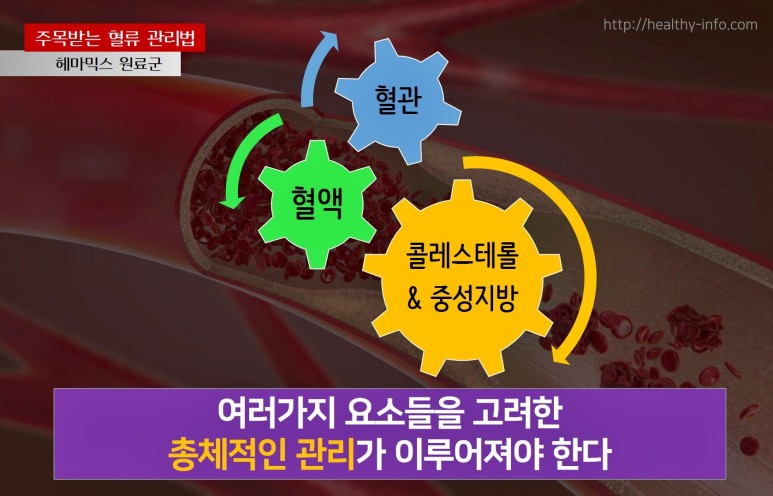 우리의 혈류 체계는 콜레스테롤, 중성지방 외에도 혈압, 활성산소, 호모시스테인, 혈관, 혈액 등 다양한 요소가 얽혀 작동합니다.설사 콜레스테롤과 중성지방 수치가 정상적이라 하더라도 고혈압, 활성산소, 호모시스테인 등에 의해 혈관에 상처가 생겨 지질침착이 가속화되고 혈관이 굳어지면 자연스럽게 혈류체계에도 악영향을 미칩니다. 다른 예로 혈액순환의 가장 기초가 되는 혈액이 부족할 경우에는 심장은 적은 양이기는 하지만 전신에 나누려고 심박출량을 한껏 높이고 동시에 혈압은 상승합니다.이처럼 한 요소가 무너져도 도미노처럼 다른 요소들까지 붕괴하게 되므로 혈중 지질수치를 안정적으로 사수하고 각종 혈관질환을 근본적으로 예방하기 위해서는 혈류체계 속의 여러 요소를 종합적으로 관리해야 합니다.