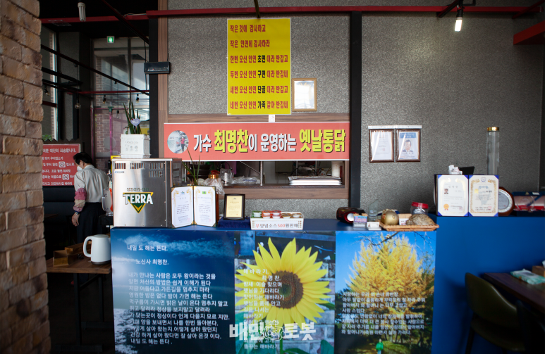 가수 최명찬씨의 이름을 걸고 있는 치킨집❗가게 입구에서 사장님의 자부심이 가득 느껴졌습니다.✨)