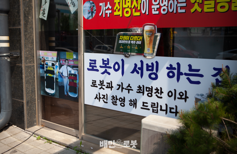 매장 외부에도 ‘로봇이 서빙합니다’라며 멋진 딜리를 자랑한다.