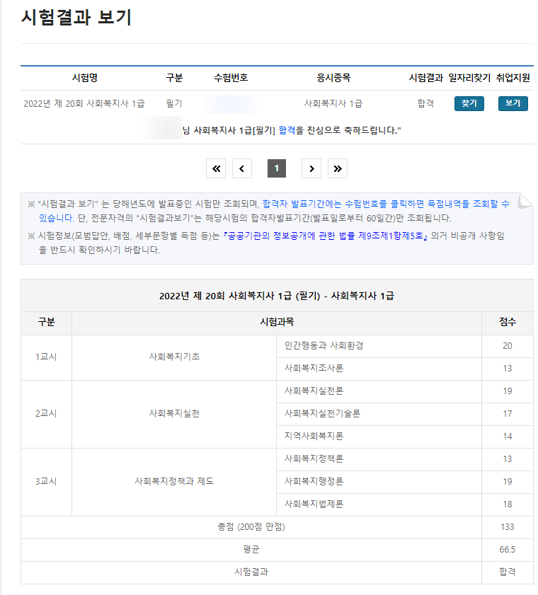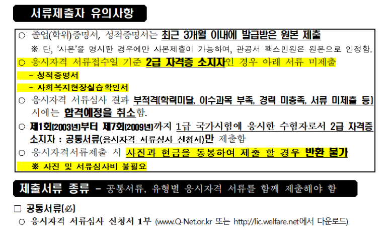 이후 응시자격서류 제출[ 자격]사회복지사 1급 합격