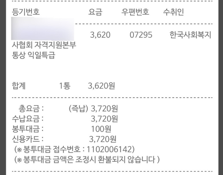 봉투값까지 포함해서 나온 금액이야. 모바일 영수증으로 받았다.