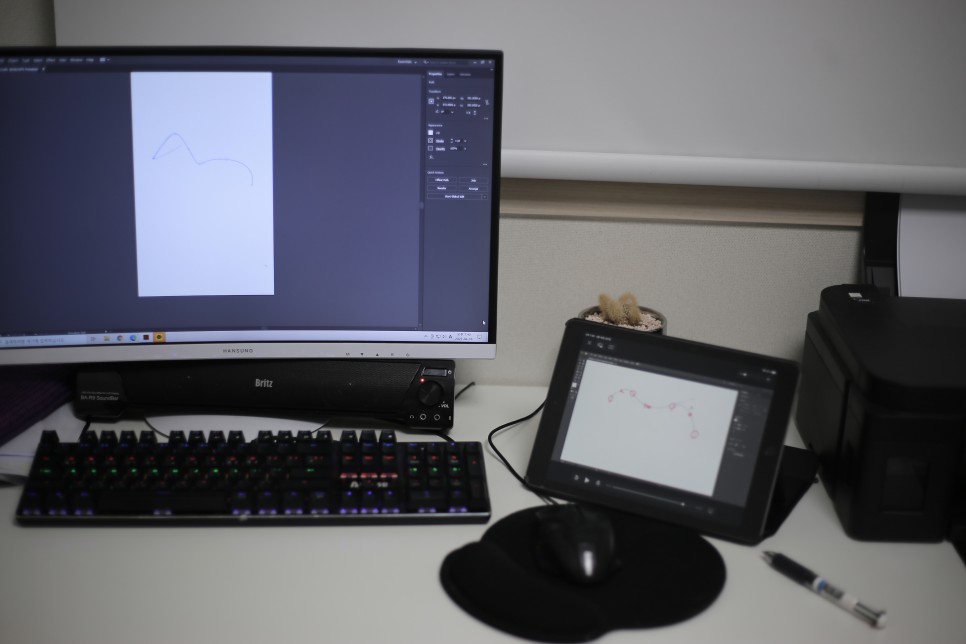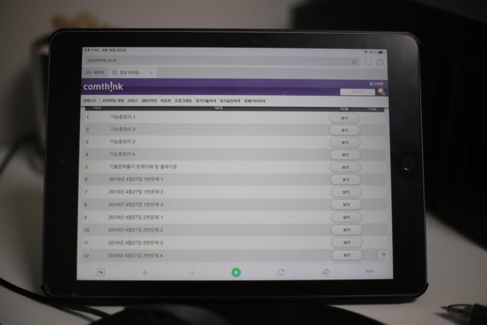 집에서는 이렇게 아이패드와 컴퓨터를 놓고 따라하면서 배우고 있습니다