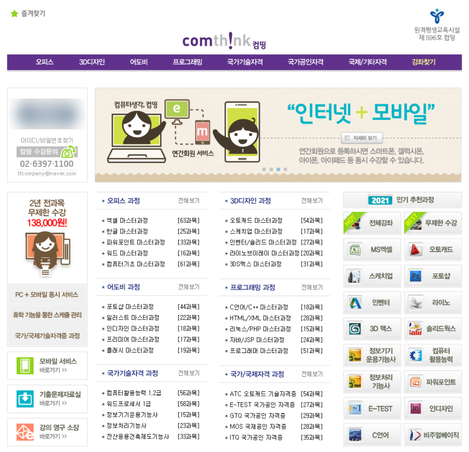 일러스트레이터 마스터과정 일러스트레이터 마스터과정은 일러스트 매뉴얼과 사용법 강좌로 일러스트 활용, 일러스트레이터 10, 일러스트레이터 CS2, 일러스트레이터 CS3, 일러스트레이터 CS4, 일러스트레이터 CS5, 일러스트레이터 CS6, 최신 버전의 일러스트 CC, 2018, 여기서 일러스트레이터와 호환성이 높은 포토샵과 코렐드로까지 포함되어 있습니다. 일러스트레이터를 배워서 로고나 삽화, 각종 도안, 예쁜 그림을 그려주세요. 인터넷으로 배우면 싸게 아주 잘 배울 수 있어요. 한 번 공부해 보세요.^^ 시작이 반입니다. 일러스트레… www.comthink.co.kr 저는 8만원대의 1년 무제한 수강권을 선택했습니다만, 여러가지 선택권이 있으니 꼭 한번 만나보세요!