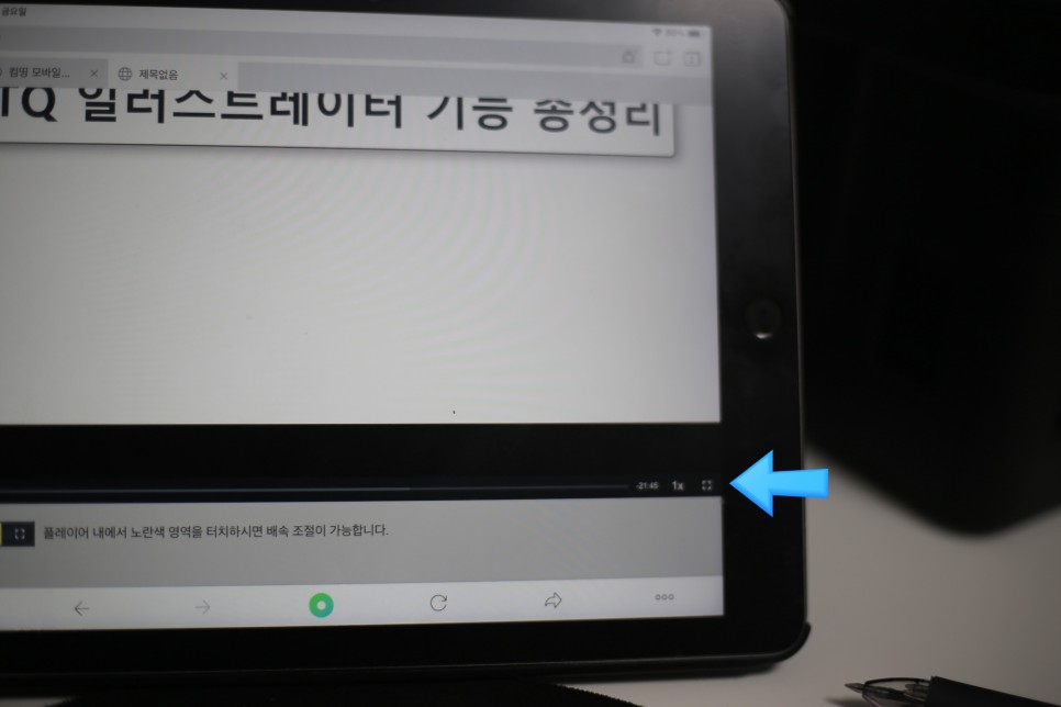저는 이렇게 아이패드로 기능부터 계속 듣기 시작했어요iPad로 화살표가 나타내는 것을 선택하면, 영상을 보기 쉽게 시청 할 수 있었습니다.
