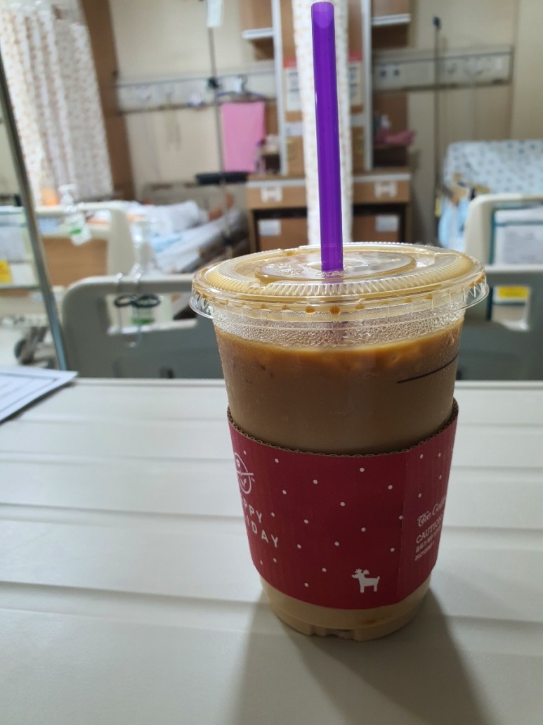 +) 입원 수속 후 병실에 들러 외식, 근처 카페에서 산 커피 한잔, 편의점 가서 구입한 과자, 아이스크림, 음료