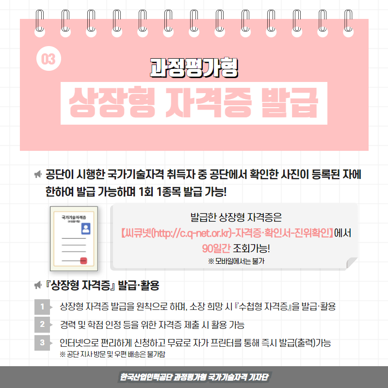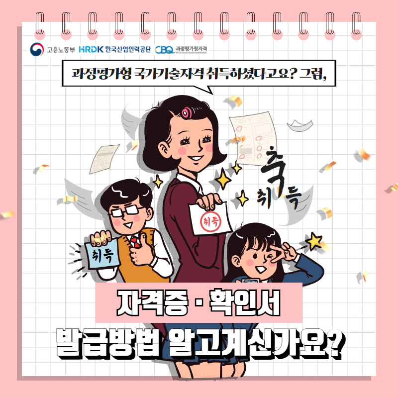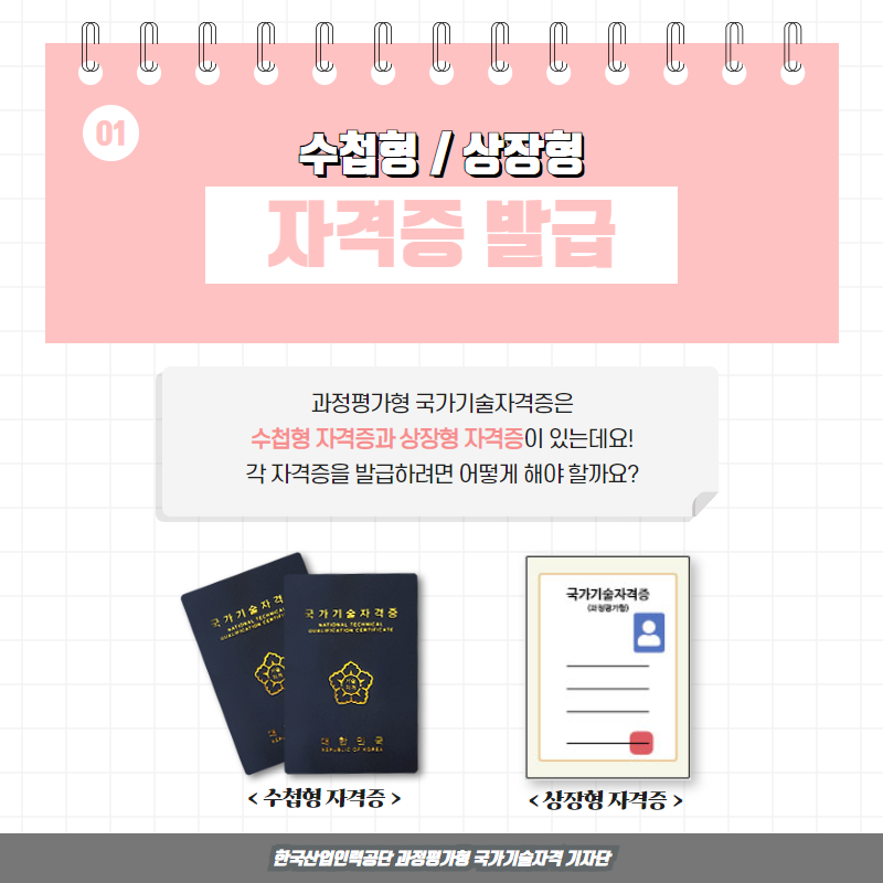 과정평가형 자격증에는 수첩형과 상장형이 있는데요! 각 자격증을 발급받으려면 어떻게 해야 할까요?