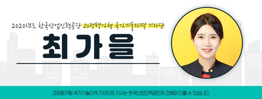 안녕하세요. 한국산업인력공단 과정평가형 국가기술자격기자단 최가을입니다.