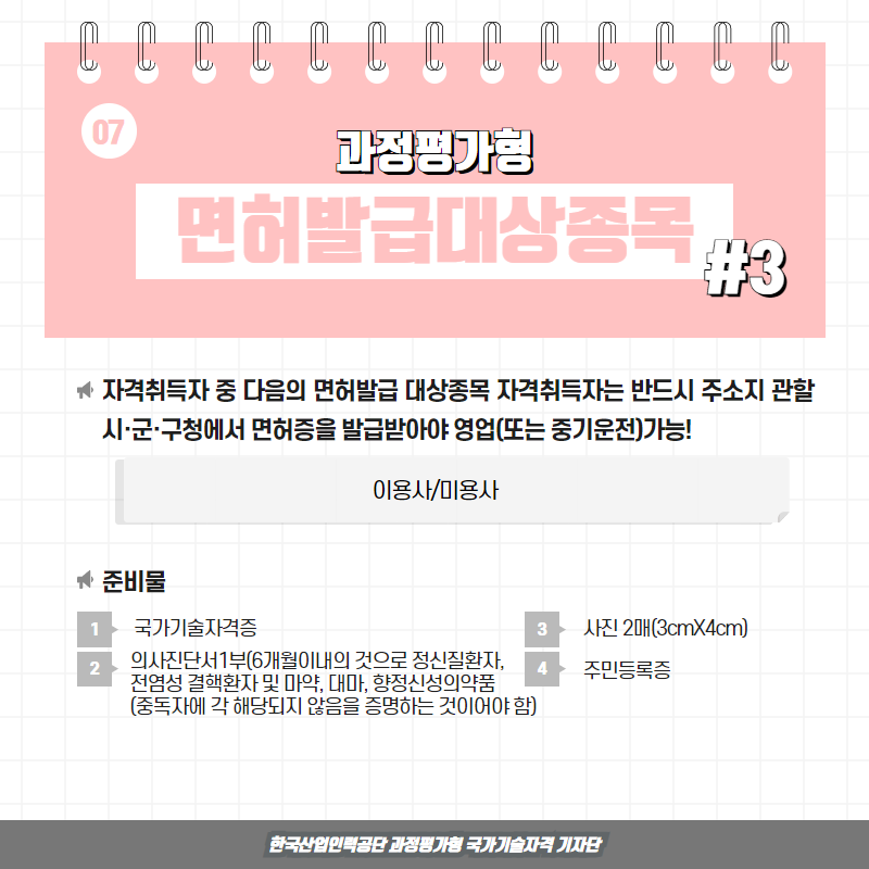 다만, 수첩형 자격증의 발행은 의무 사항이 아니며, 수첩형 자격증은 우편으로만 가능하므로 주의해 주십시오.