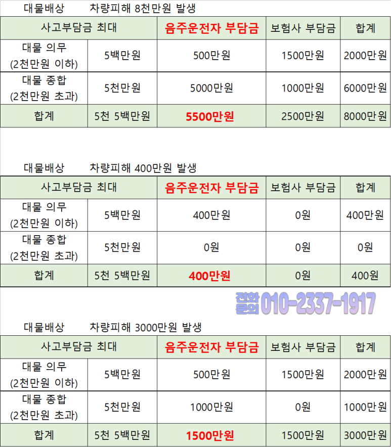 항상 음주운전으로 가해자가 되면 보험처리를 받기 위해 본인이 부담하는 사고부담금을 알아봅니다.