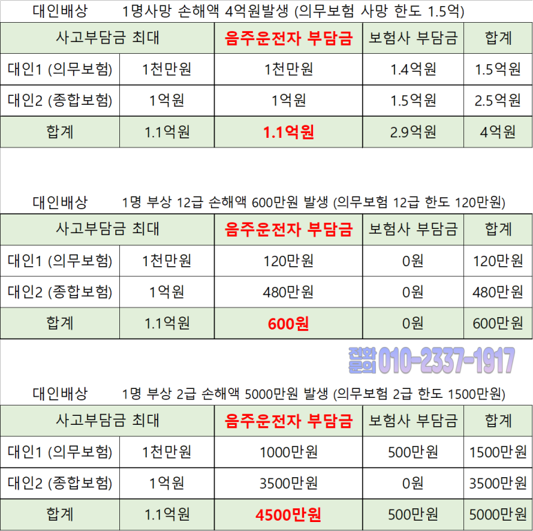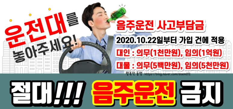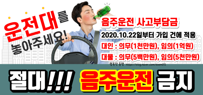 2020년 6월 개정된 음주운전사고부담금 대인의무(1천만원), 임의(1억원)