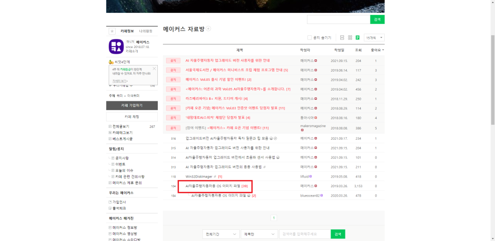 https://cafe.naver.com/ma kersmagazine 메이커 매거진의 다양한 키트를 조립하고 자랑해보세요! 나만의 만들기를 서로 공유해보세요! :>cafe.naver.com 제조사에서 제공하는 메이커 카페에서 자신의 RC카에 맞는 OS를 다운로드합니다.