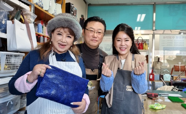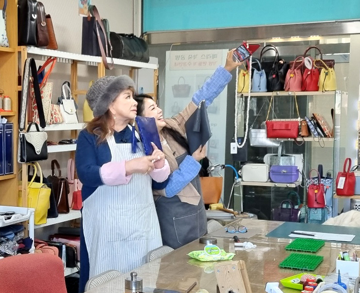 공방에 놀러온 것이 아니라 1월 20일 jtbc에서 오전 9시에 방영하는 “최상의 왕” 프로그램을 찍기 위해 공방에서 촬영을 하러 왔습니다. 장미화 선생님 촬영인데… 좋아하는 거 하는 모습을 찍어야 되는데 본인이 가죽공예를 해서 클러치를 만들고 싶다고 하셔서 작가님이 저희 공방에 오셔서 연락을 주셔서… 장미화 선생님 좋아하는 제가 흔쾌히 해드리기 위해 한 촬영입니다.