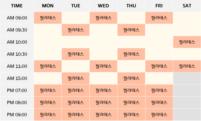 1:5 기구의 필라테스 시간표도 참고해주세요^^