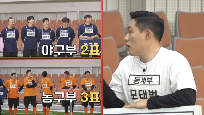 특히 평균 연령이 높은 야구부와 농구부가 최다 득표, 게다가 비운동팀인 연예부에까지 약자로 꼽혔어요.?