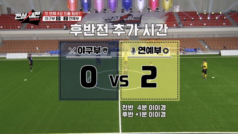 1:0으로 전반을 끝내고 여유 있는 연예부와 전략을 바꾼 야구부!