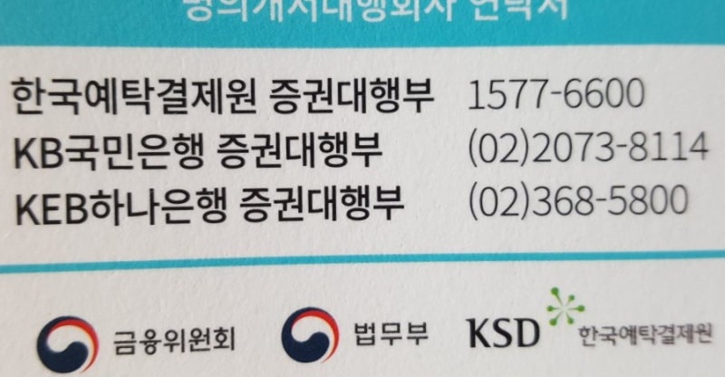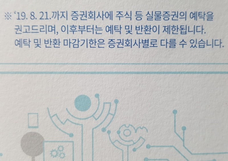 ※OECD 회원국 36개국 중 33개국이 도입한 선진자본시장제도※OECD 회원국 36개국 중 33개국이 도입한 선진자본시장제도제도시행일 2019년9월16일(월)관련법 주식·사채등 전자등록에 관한 법률 (2016.6.22. 제정 및 공포)관련법 주식·사채등 전자등록에 관한 법률 (2016.6.22. 제정 및 공포)전자등록전환대상증권실종증권은 제도 시행일에 의무적으로 전자증권으로 전환되고.비상주식이나 발행인의 신청에 의해 전자등록으로 전환실종증권은 제도 시행일에 의무적으로 전자증권으로 전환되고.비상주식이나 발행인의 신청에 의해 전자등록으로 전환투자자 주의사항을 꼭 읽어주세요! 2019년 9월 16일.전자증권이 시작됩니다! 보유하고 있는 주식 등 실물 증권을 증권사에 예탁하세요.증권사에 예탁하지 않은 전자등록 전환 대상 실물증권은 제도 시행일 효력이 상실되고 명의개서대행사에 특별계좌로 전자등록돼 권리행사 등이 제한됩니다.증권사에 예탁하지 않은 전자등록 전환 대상 실물증권은 제도 시행일 효력이 상실되고 명의개서대행사에 특별계좌로 전자등록돼 권리행사 등이 제한됩니다.안전한 권리행사를 위해 보유하고 있는 실물증권을 예탁해 주세요.특별계좌에 전자등록된 증권은 제도 시행일 이후 명의개서대행사를 방문하여 증권사 계좌로 계좌이체하여야 합니다.특별계좌에 전자등록된 증권은 제도 시행일 이후 명의개서대행사를 방문하여 증권사 계좌로 계좌이체하여야 합니다.특별계좌에 전자등록된 증권은 제도 시행일 이후 명의개서대행사를 방문하여 증권사 계좌로 계좌이체하여야 합니다.2019년 8월 21일까지 증권사에 주식 등 실물증권 예탁을 권고하며, 향후 예탁·반환이 제한됩니다. 예탁결제 마감기한은 증권사에 따라 달라질 수 있습니다.2019년 8월 21일까지 증권사에 주식 등 실물증권 예탁을 권고하며, 향후 예탁·반환이 제한됩니다. 예탁결제 마감기한은 증권사에 따라 달라질 수 있습니다.2019년 8월 21일까지 증권사에 주식 등 실물증권 예탁을 권고하며, 향후 예탁·반환이 제한됩니다. 예탁결제 마감기한은 증권사에 따라 달라질 수 있습니다.전자등록종목 및 명의개설대행사 조회보유한 주식 등 실물증권의 전자등록 전환 대상 여부 및 발행사별 명의개서대행사를 한국예탁결제원 홈페이지에서 확인하세요!보유한 주식 등 실물증권의 전자등록 전환 대상 여부 및 발행사별 명의개서대행사를 한국예탁결제원 홈페이지에서 확인하세요!명의개서대행회사연락처명의개서대행회사연락처명의개서대행회사연락처
