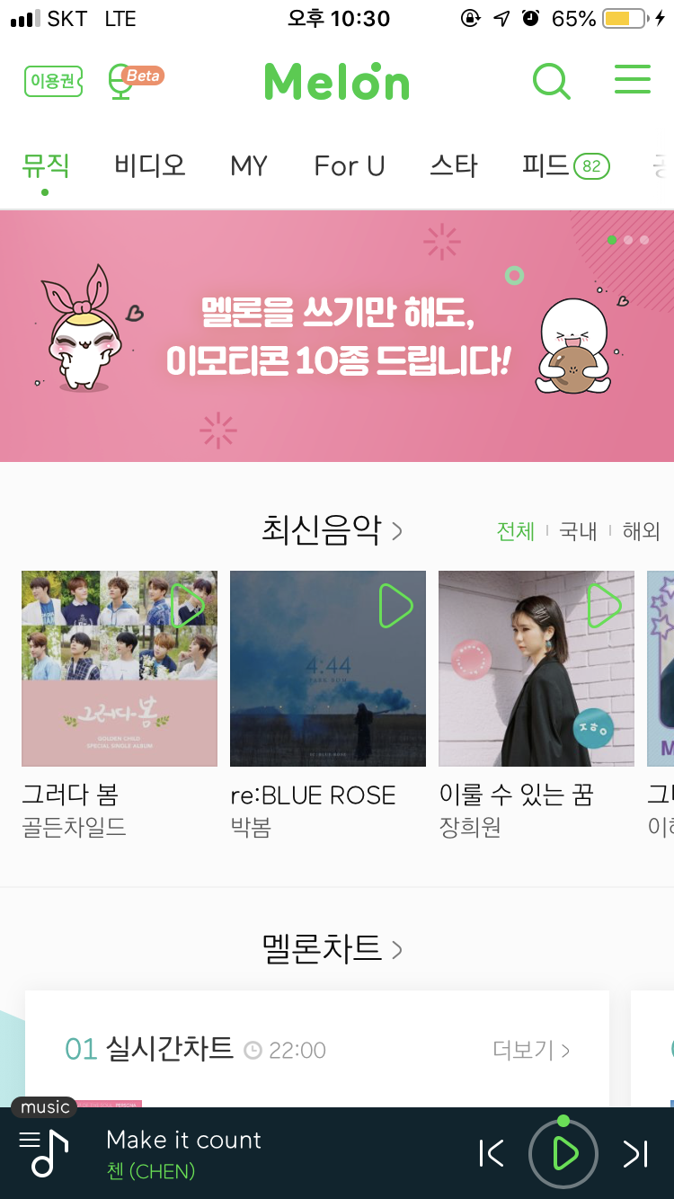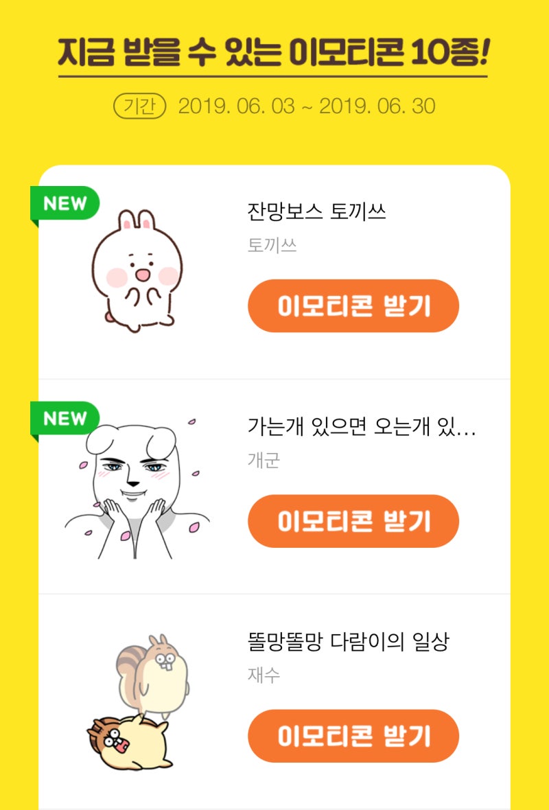 안녕하세요 꽃바떼입니다.이번 주 내내 바빴어요.오랜만에 포스팅을 합니다.6월이 되어서 확인해본 이벤트! 6월 멜론 카카오톡 이모티콘 10종 이벤트