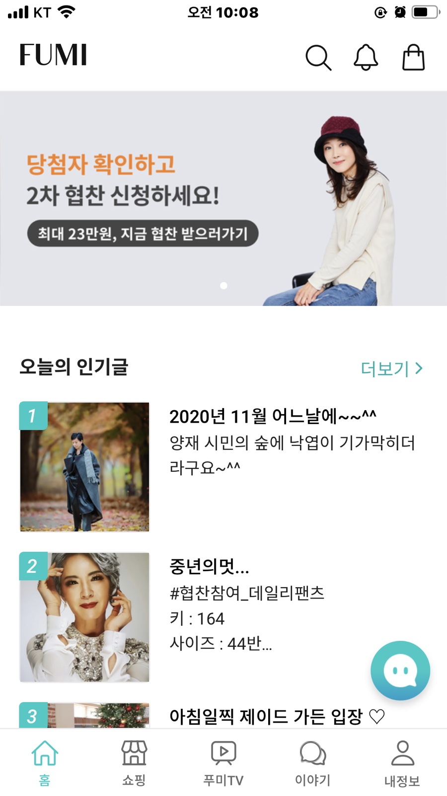 중년의 모든 스타일을 담는다! 점잖은 중년들의 패션 커뮤니티[푸미] 요즘 주변에서 어떻게 입지? 최신 패션 트렌드를 살펴보시고 나에게 딱 맞는 스타일로 맞춤 쇼핑을 해보세요. 푸미 모델에 도전하시고 브랜드 협찬까지 받으세요! 푸미에서는 누구나 모델이 됩니다 푸미에서는 사이즈 상관없이 누구나 모델핏.fumi.co.kr
