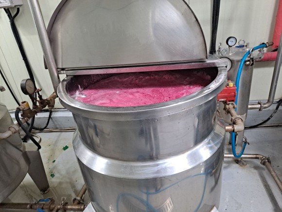 고압 세척 비트를 효소를 살리기 위해 저온에서 착즙합니다.냉장 보관, 얼음 팩으로 콜드 체인을 해야 하기 때문에 굉장히 번거롭지만 영양을 위해서 만들었습니다.