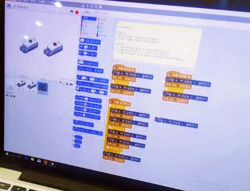 컴퓨터만으로코딩을끝내는것이아니라직접만든코딩프로그램을로봇코딩으로실현할수있는방법도교육에포함되어있습니다.