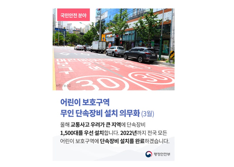 어린이보호구역 무인단속장비 설치 의무화에 따라 2022년까지 전국 모든 어린이보호구역에 단속장비 설치를 완료한다고 합니다.