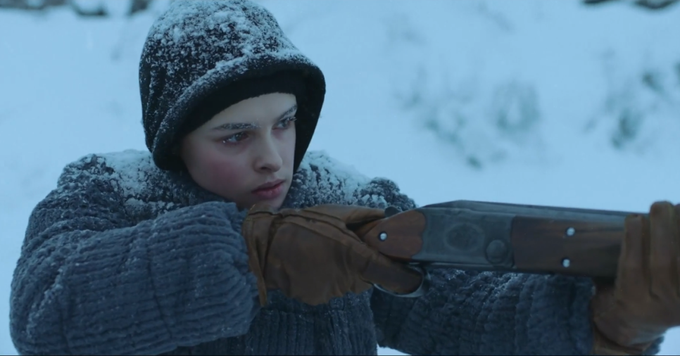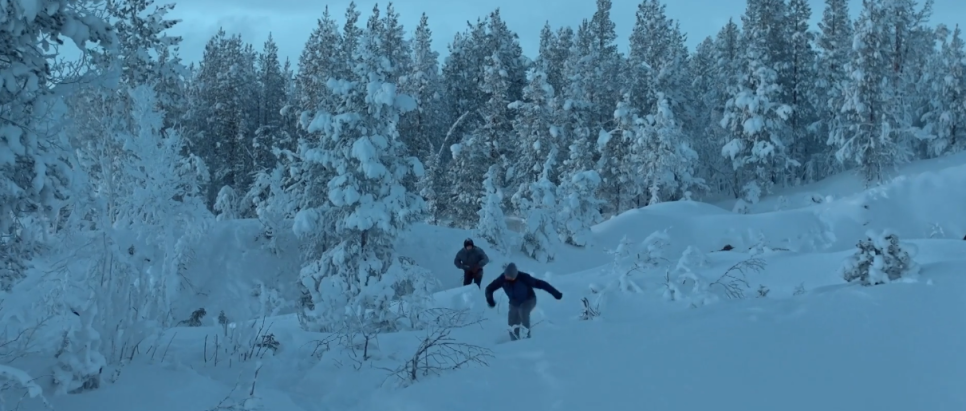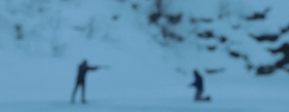 추격전 끝에 꽁꽁 언 호수를 피해 달아나기를 포기한 상대, 결국 둘밖에 없는 설산 호수에서 큰 총성이 울리고 맙니다.