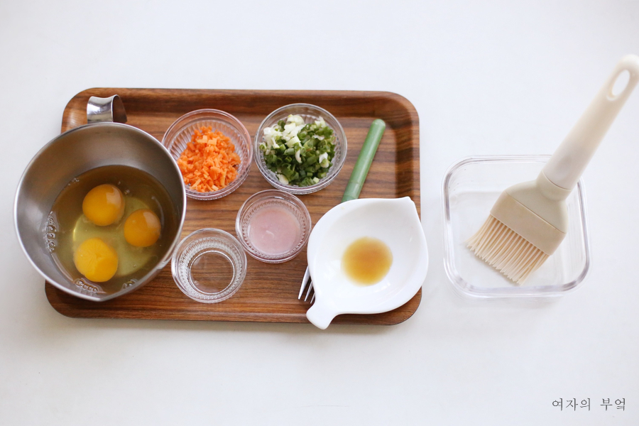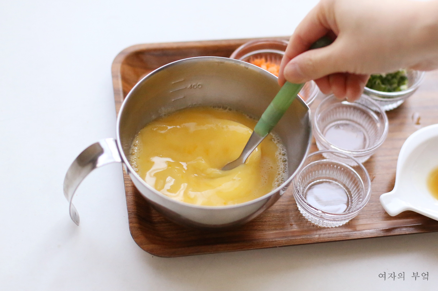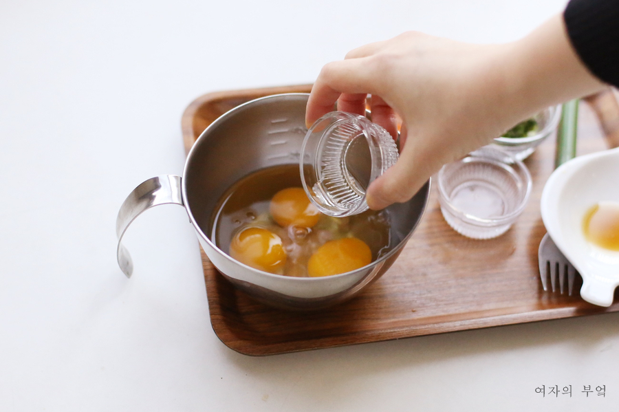 달걀 간은 새우젓국으로 만들고 맛술을 약간 넣어 비린내를 없앤다.새우젓이 없다면 국간장도 괜찮다.
