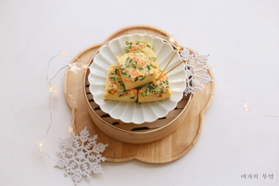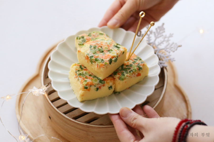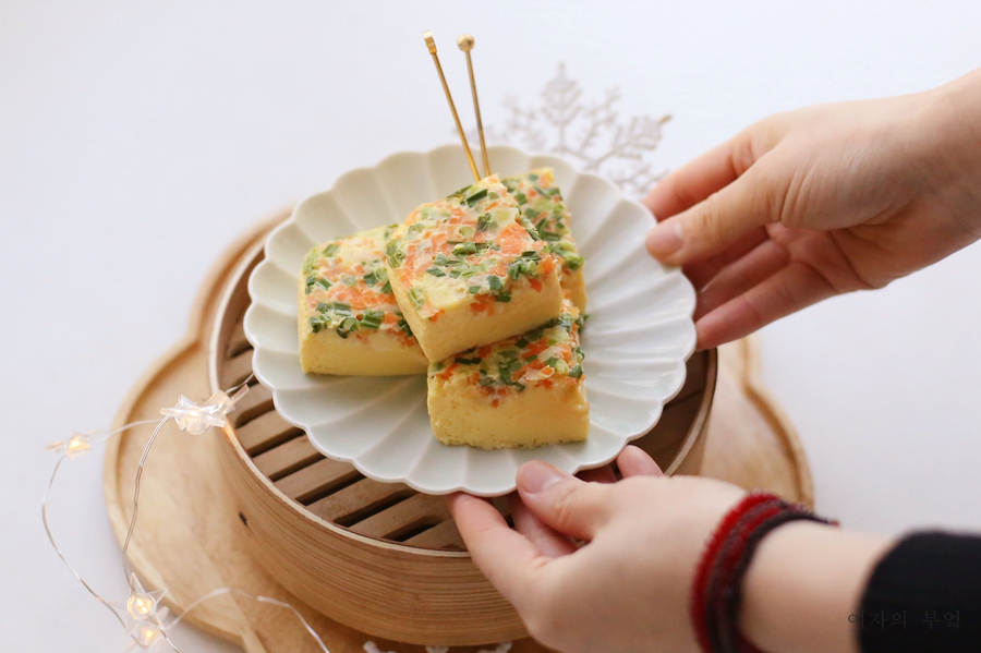 #계란찜 만들기에 여러 방법이 있지만 탱글탱글한 #급식계란찜은 사각 틀에 끼워 #계란찜탕으로 한다.이렇게 하면 입안에서 살살 녹는 #부드러운 계란찜이 만들어지는데 마치 질감이 푸딩처럼 탱탱하다.담백하고 고소한 맛이 나 아이들 반찬, #조식 반찬으로 든든하다.