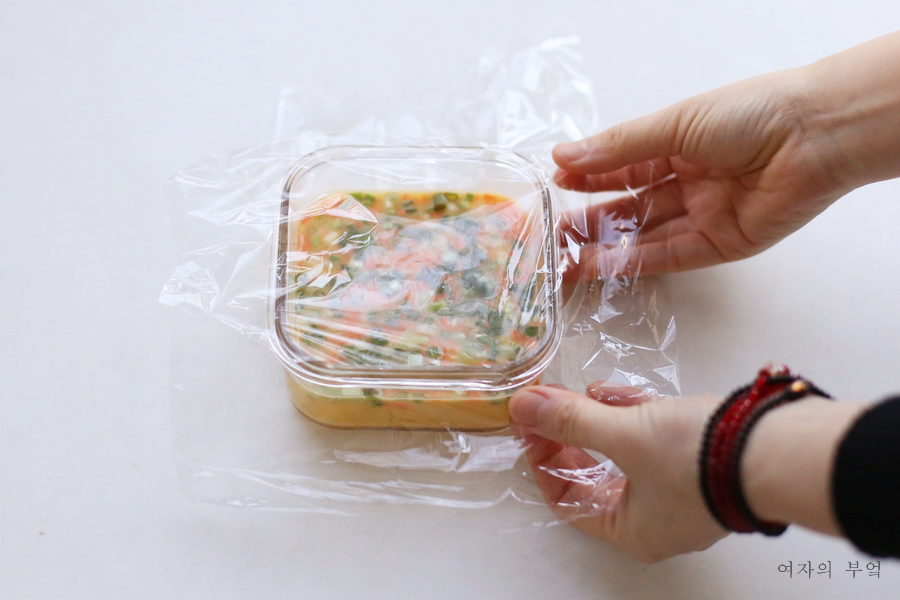※ 찬통은 글라스락 사이즈입니다.큰 사이즈로 만들 때의 분량은 아레의 조리 과정 안에 기재해 두겠습니다.유리캔의 사이즈에 따라 모양과 계란의 양이 다를 수 있습니다.