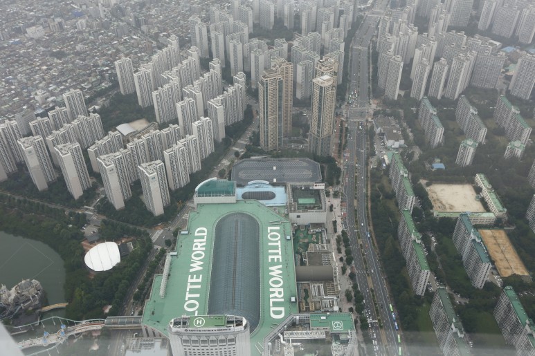 지난 9월 7일 캐나다 밴쿠버에 있는 외손자가 여름방학을 맞아 외갓집에 오면서 아들 내외와 함께 롯데타워 구경을 갔다. 언제 한번 가보자는 소원을 풀었다. 건물 외부는 지나다녀 보았지만 건물 안으로 들어가는 것은 처음이다. 주차장에서 여기저기 바쁘고 엘리베이터는 어디서 타야 하는지 등 촌뜨기는 그저 어리둥절했다. 고속 엘리베이터로 순식간에 전망대까지 올라간다.