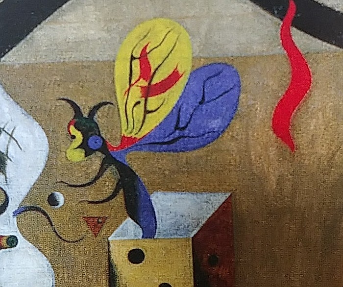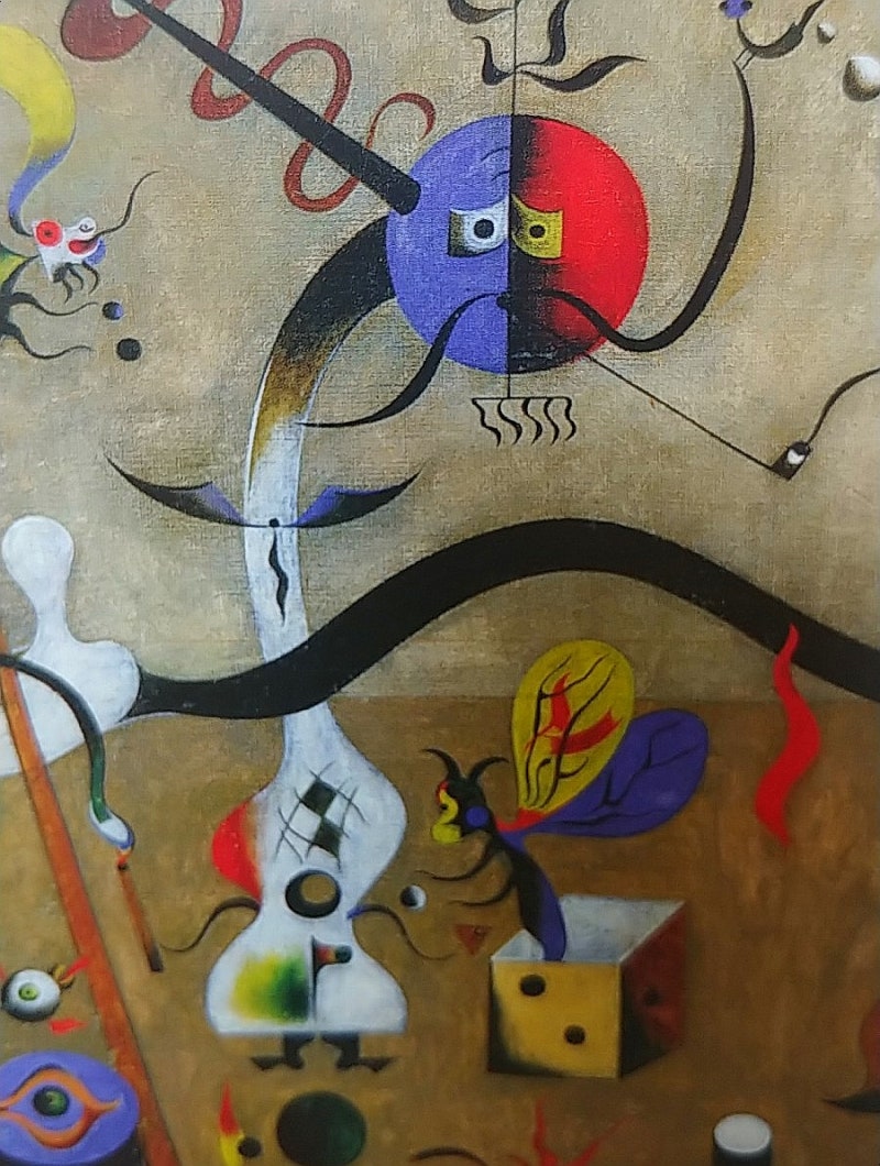 빈센트·느우이오라의 초상 호안 미로 캔버스에 유화 104×113cm1917폴크발 미술관, 독일 엣셍 피카소 같은 느낌도 하고 석잔의 느낌도 하고 야수가 신음 소리도 합니다.물론 젊었을 때 그린 것이고 성숙하면서 추상으로 갈 수 있었지만, 호안 미로는 젊기 때문에 파리 시대에 라면 플레이크 모양을 보고 있었대요.1893년 바르셀로나에서 태어난 후안·미로는 적당한 집 아들이었습니다. 아버지가 보석 세공과 시계를 만드는 기술자였습니다. 아들을 빨리 미술 학교에 가서 25세에서 첫 개인전도 벌어질수록 경제적으로는 괜찮았어요.미술 학교에도 다녔지만 혹시나 해서 비즈니스 학교에도 다니고 졸업하고 직장 생활도 했습니다. 물론 직장 생활은 쉽지는 않았습니다. 곧 멘털 붕괴가 되어 그만두고 전업 화가가 되었습니다.1920년 미술의 중심 파리에 상경하고 초현실주의자들과 친하게 지냈습니다. 이때가 제1차 세계 대전이 끝나고 몇명도 배가 고팠던 시대잖아요.호안 미로도 배가 고팠지만 겉으로는 배가 고픈 척하지 않았대요.미술 재료도 사서 열심히 그림도 그렸습니다. 가끔 스페인 바르셀로나에 가서 가족도 만나고 새로운 아이디어도 받아 왔어요.그렇게 남 앞에서는 배가 고파서 못은 척하기 때문에, 혼자 있을 때는 어쩔 수 없이 굶어 있었대요. 저녁을 거르는 것은 흔한 일이었죠. 밖에서도 거의 안 먹고 작업 실로 돌아왔대요.배가 고프면 잠 잘 때 천장에 네모난 동그라미의 선이 보이기 시작했대요.그때마다 재빨리 손에 잡힐 종이에 따라서 그림을 그렸습니다.