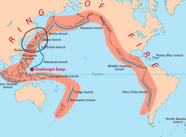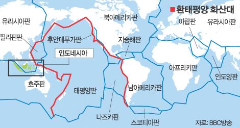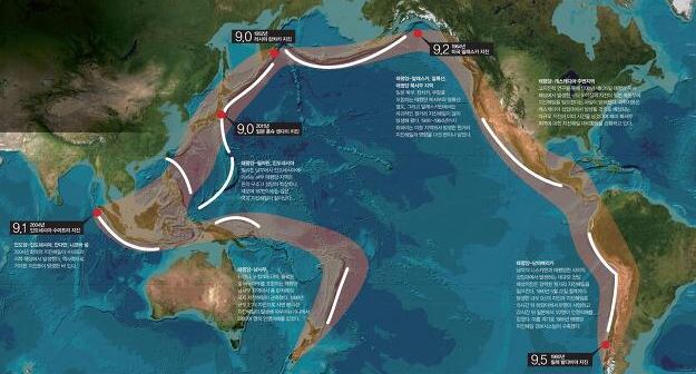 출처 : 과학동아북스의 가장 큰 원인은 불의 고리(환태평양 지진대)입니다.불의 고리는 지진이나 화산 활동이 활발한 세계 최대의 화산대, 태평양을 고리 모양으로 하고 있는 지역을 말합니다.이불 고리에 속하는 국가에서는 지진이 약 80%에서 90%, 화산이 약 75% 이상 집중되어 있습니다.