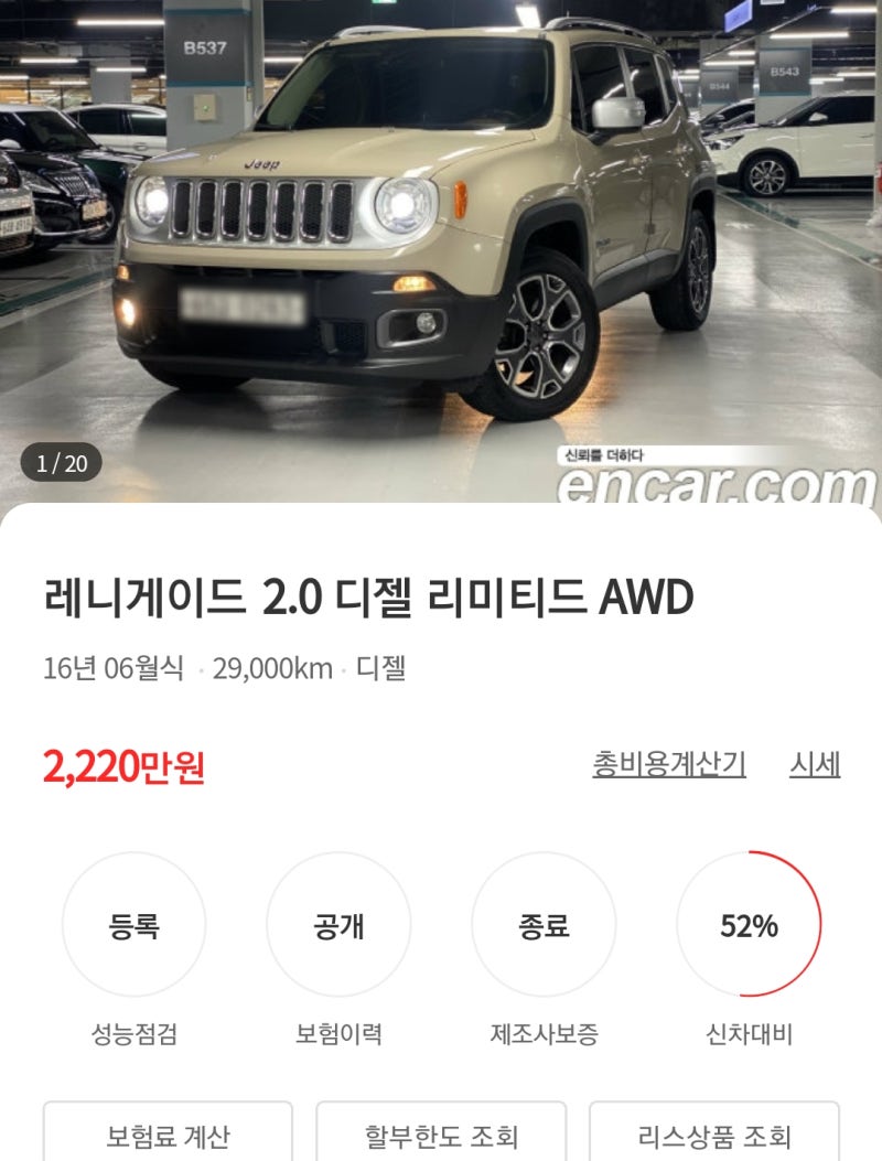 이것도 저번주에 보고 왔는데 바쁘다는 핑계로 계속 리뷰 작성이 늦어졌네요. 지프 레니게이드 중고차 엑기스만 뽑아드리고 멋지게 사라질테니 정신차리고 쫓아오세요~