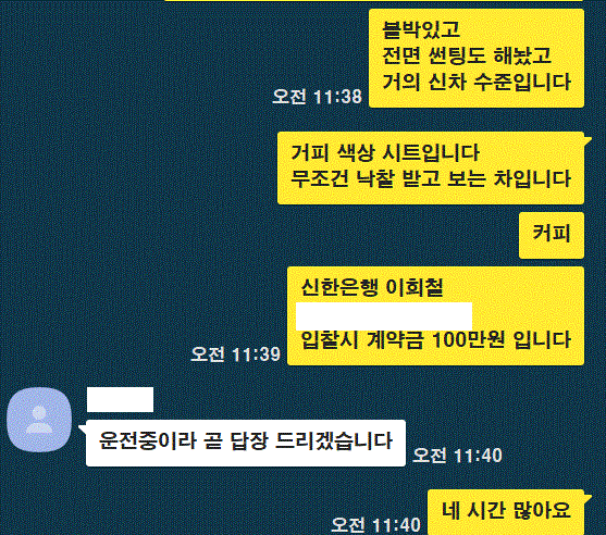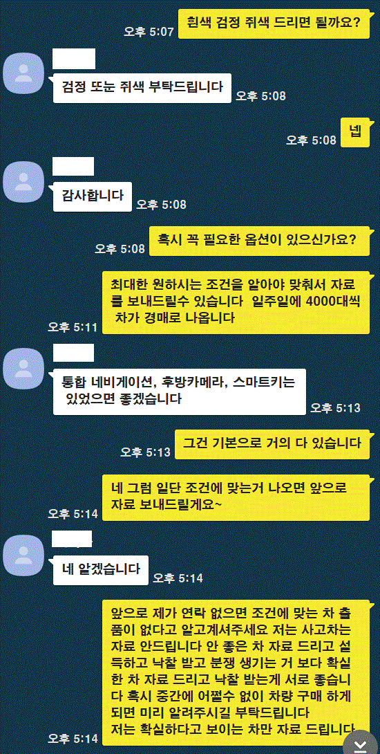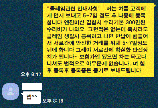 저는 8년 전부터 고객들이 마음에 들어하지 않으면 환불해 주었어요.정말 환불해 드리겠습니다. 고객님이 7일 정도 타 보시고 마음에 드신다면 그 때 등록해 드리겠습니다. 저는 머리와 분쟁은 하지 않습니다.그냥 반품하시면 됩니다. 물론 들어온 돈은 전부 돌려드리겠습니다.반품되지 않으시려면 정말 좋은 차만 골라서 낙찰받겠습니다.