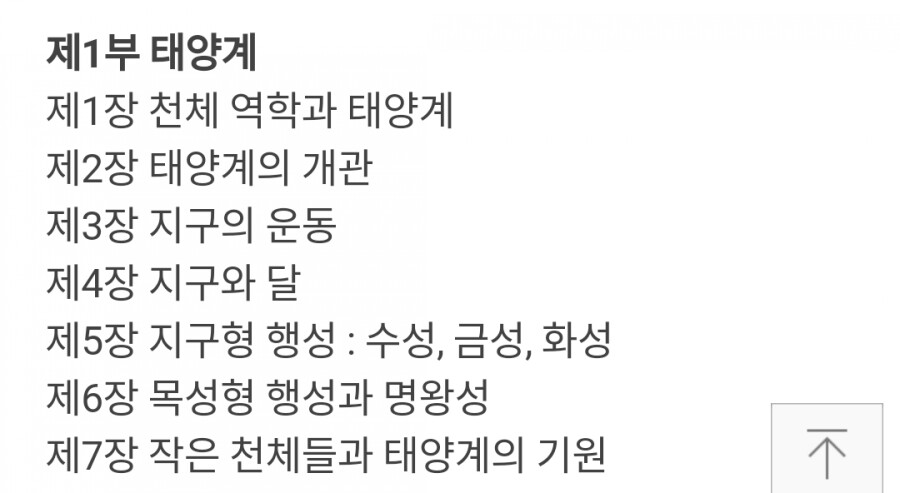 보시면 아시겠지만 천문학에 등장하는 개념들이 대부분 등장하기 때문에 이 책만 봐도 그런 개념들이 존재한다는 것을 알 수 있다.(이 목차를 보면 쉬워 보이지만 세부 목차 이름을 보면 처음 보는 내용도 넘쳐날 것이다.)