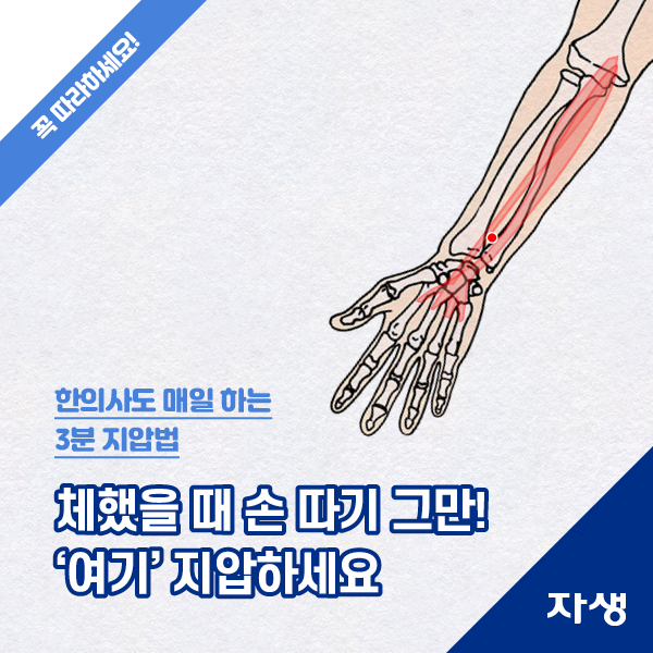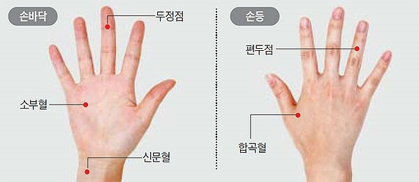 여러분 겨울에 체하기 쉬운 이유 아세요?날씨가 따뜻해지고 갑자기 추워질 경우 우리 몸은 체온을 뺏기지 않기 위해 긴장 상태에 돌입하면서 혈관이 수축하게 되고 따라서 평소와 같은 음식을 먹어도 체하기 쉬워집니다.그래서 오늘은 체했을 때 지압하는 혈자리 2곳과 갑자기 손을 잡기 좋은 혈자리 2곳을 알려드리겠습니다. 체했을 때 지압하는 경혈, 사관혈, 어제의 경혈