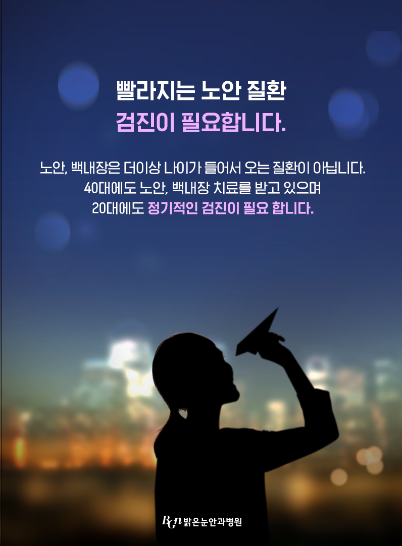 눈의 노화가 본격적으로 일어나는 40대부터는 1년에 2회 정도의 지속적인 정, 기, 검, 검진을 하는 것이 좋으니 이 점을 참고하시기 바랍니다.