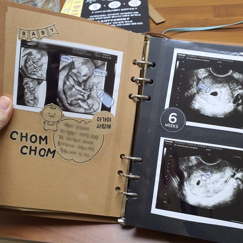 초음파 사진은 그대로 두면 햇빛이나 공기에 의해 검게 타 날아간다고 합니다.아, 그러면 추억이 사라지잖아요. 안돼요!!(울음) 테이프에 공기가 통하지 않게 깨끗하게 보관해주세요! 나중에 아이들에게 추억과 선물이 될 수 있잖아요!