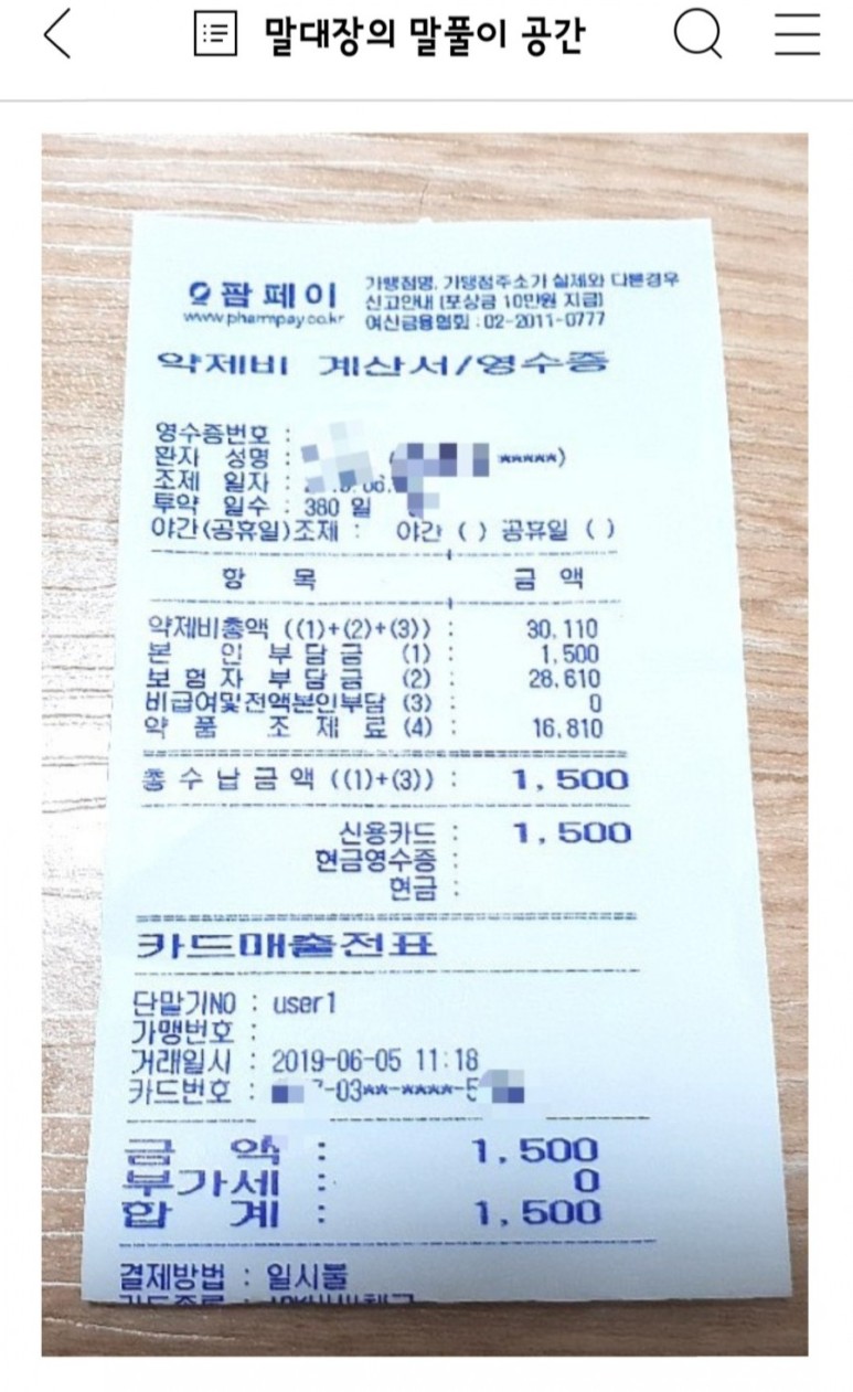20배는 아니지만 각각 1500원과 9200원.역시 약값도 좀 비싸졌지만 내 생명을 책임질 약이 1년 치 1만원도 안 된다니 감사할 따름이다.