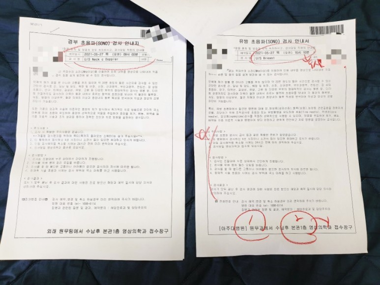나와 비슷한 관심사를 가진 이웃 중 몇몇은 아시겠지만 나는 현재 갑상샘암 수술을 한 지 6년이 지났고 개인적으로 매년 건강검진도 하고 있는데 그때 유방 의심도 발견돼 추적검사를 하고 있다. 참고로 그냥 물집일 뿐이지만, 한번 힘든 일을 겪고 있기 때문에 계속 추적 검사 중. 그래서 일년에 한번씩 아주대에 3-4주 동안 가야 하는 스케줄이 생겼는데, 진료 1주일 전 채혈은 대학병원 기본 시스템이기 때문에 꼭 가야 하고 유방은 족파 및 엑스레이가 기본 검사가 다시 가야 하고… 영상의학과 예약일에 1주일 전 채혈은 대학병원 기본 시스템이기 때문에 꼭 가야 하고, 유방은 족파 및 엑스레이가 기본 검사가 다시 가야 하고, 영상의학과 예약일에 다시 가야 하고…